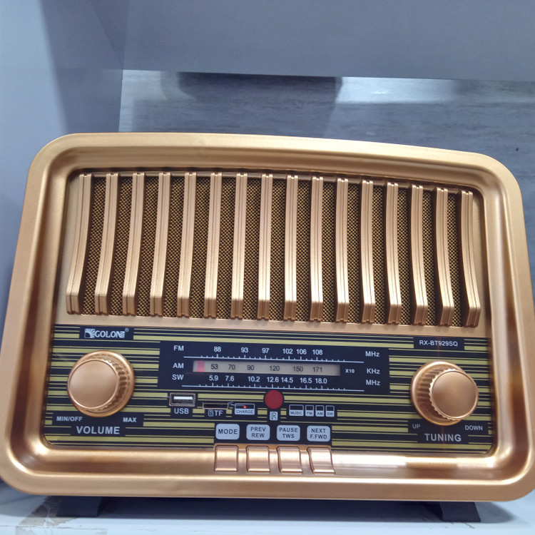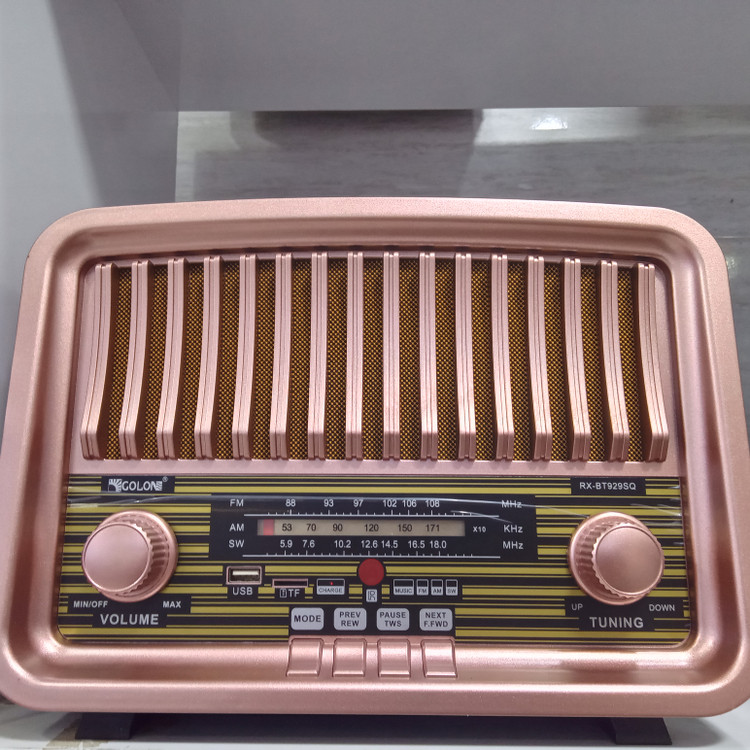 رادیو اسپیکر شارژی مدل GOLON BT929SQ یک رادیو اسپیکر خاص دارای کیفیت وطراحی شیک و نوستالژی می باشد. از مزیت های این رادیو قابل حمل آسان دارای دو منبع تغذیه برق ۲۲۰ ولت و برق DC باطری ۴ولت می باشد. مزیت دیگر این دستگاه دارای سولار می باشد یعنی پنل خورشیدی دارد جاهایی که دستگاه شارژ نداشت وبه برق دسترسی نبود با قرار دادن دستگاه دربرابر نور خورشید دستگاه شارژ می شود. دارای سه موج رادیو با کیفیت FM.AM.SW داری پورت UsB و TFکارت حافظه می باشد. اگر به دنبال اسپیکری هستید که دارای صدا وکیفیت خوبی باشد و دارای طرح نوستالوژی مثل رادیو باشد این مدل اسپیکر رادیو انتخاب خوبی می باشد